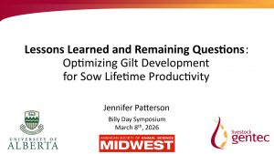 Kayla’s poster explored the possibility of earlier selection against sows with low litter birthweight phenotypes (LBWP) to support more efficient gilt selection and herd management.